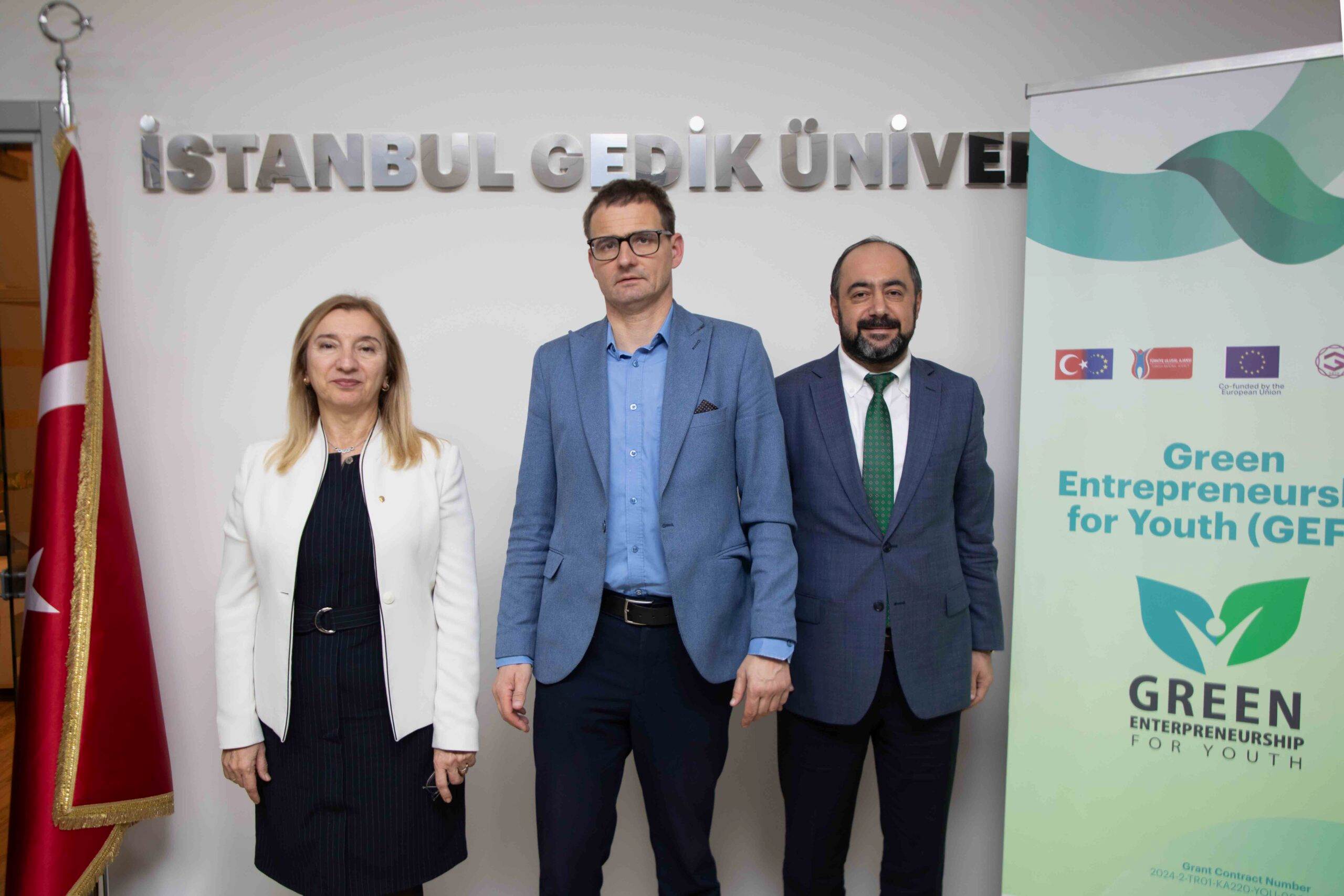Erasmus+ KA2 projeleri kapsamında, İstanbul Gedik Üniversitesi koordinatörlüğünde yürütülen “Gençler için Yeşil Girişimcilik” isimli projenin açılış ve değerlendirme toplantısı, proje ortaklarının katılımı ve Üniversitemiz Rektör Vekili Prof. Dr. Feriha Erfan Kuyumcu’nun iştirakiyle 11 Aralık 2025 tarihinde İstanbul Gedik Üniversitesi’nde başarıyla gerçekleştirildi.